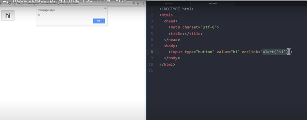 - onclick으로 클릭하면 > alert창 생성
